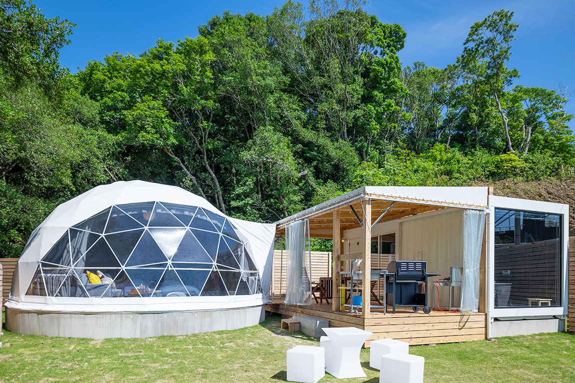 GLAMP DOME 伊勢賢島は、伊勢志摩の自然に囲まれた高級グランピング施設です。