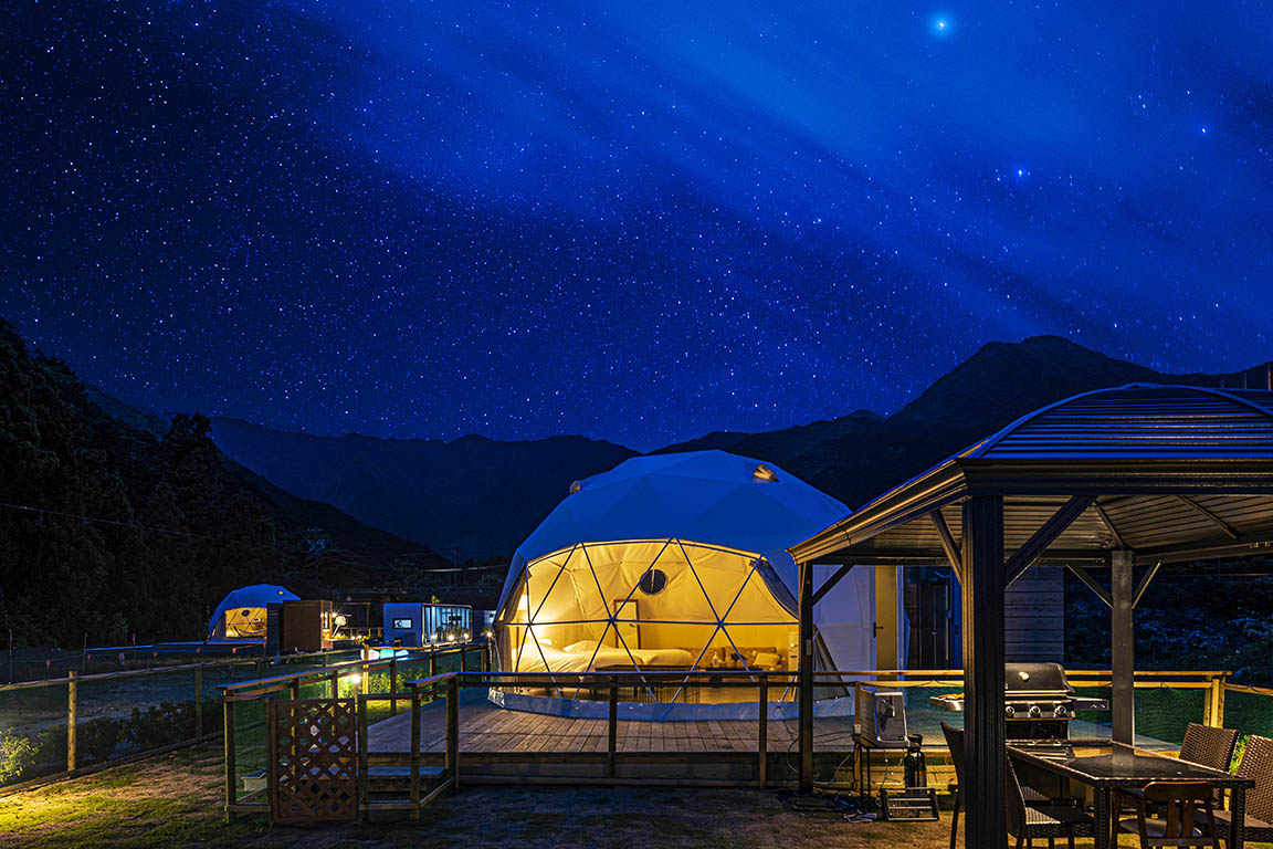 伊勢海老や松阪牛を使った豪華なBBQや、贅沢なドーム型テントでの宿泊が魅力です。