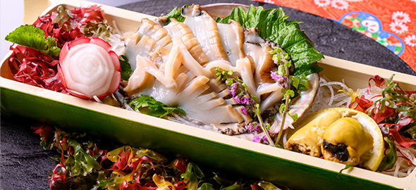 例えば写真のあわびの刺身は、時価6,000円から注文できます。